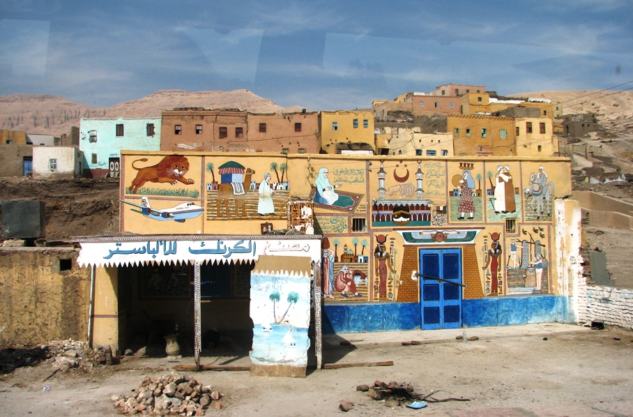On the way from the Valley of the Kings to the Valley of the Queens stands this brightly decorated house, close to the street on the foot of the mountains.