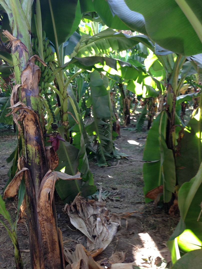 leading to an elevated part of the Nile’s Bank, there , on top of the stairs were rows and rows of banana plants. I was not tired anymore – I had never seen how bananas look in their natural habitat.