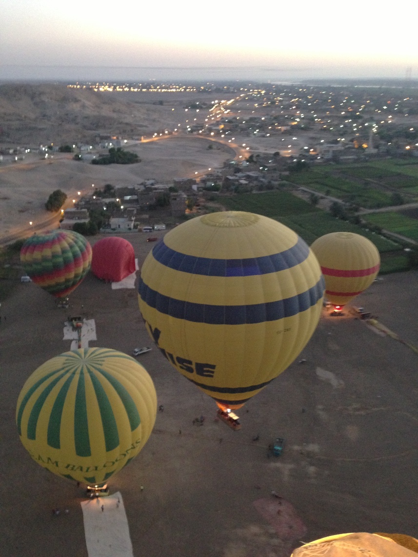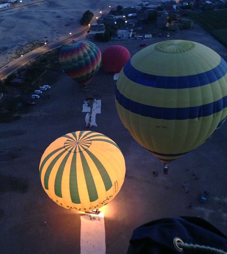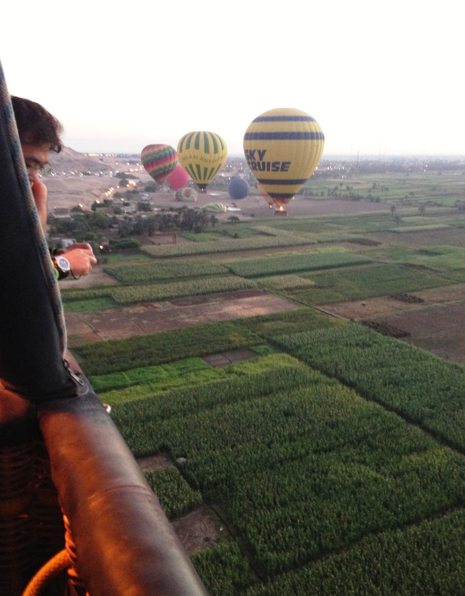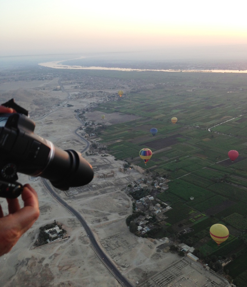 If I had a little apprehension, it quickly disappeared when the balloons took off – passing over sugar cane fields, with the upcoming sun shining on the Nile in the distance,
