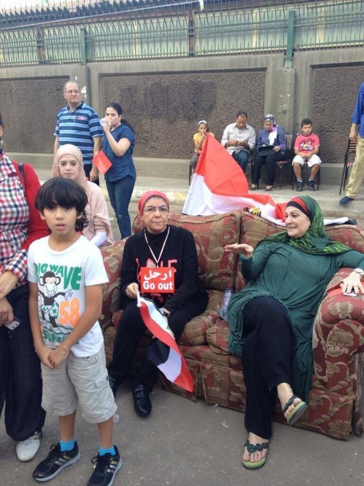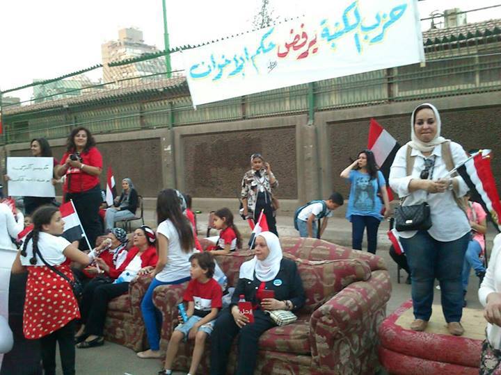 Since the Revolution a new party called Hizb El-Kanab – meaning Couch Potato Party – has developed. They are people who watched the events during the last two years while sitting on their sofas at home. But this time they did not stay at home, but joined the demonstrations – their way…….