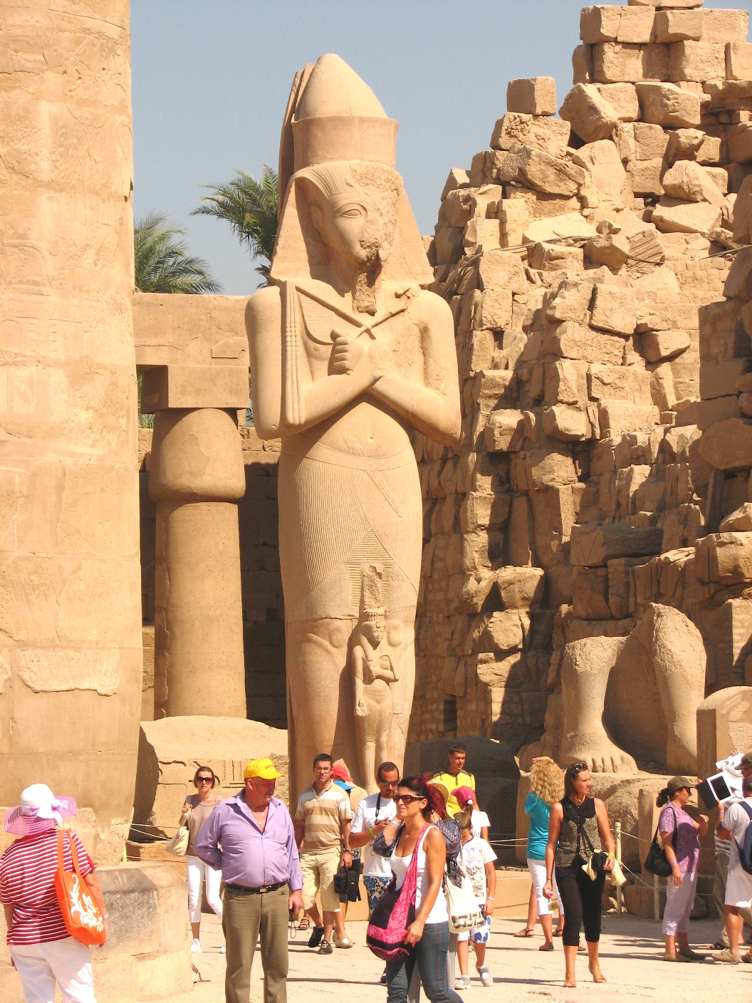 This Statue of Ramses II is standing at Karnak Temple. The small statue between