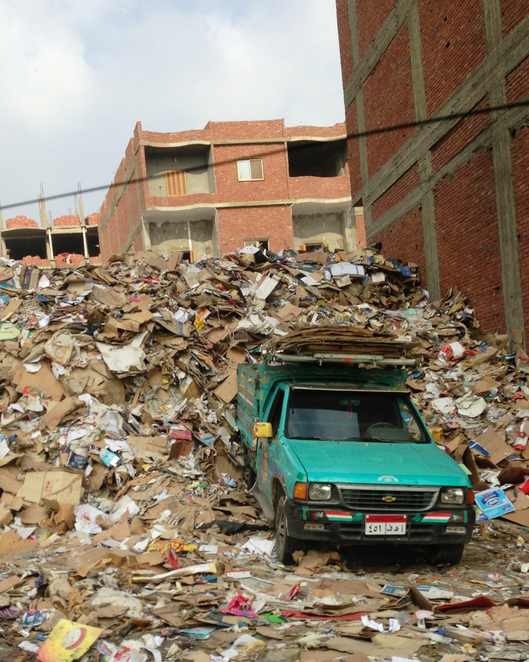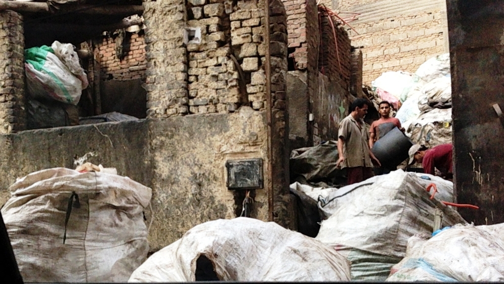 Garbage is brought to Manhshiyat Naser by Zabbalin (garbage collectors) and stored in large rooms where men, women and children sort through it, separating it into sellable or unsellable items.