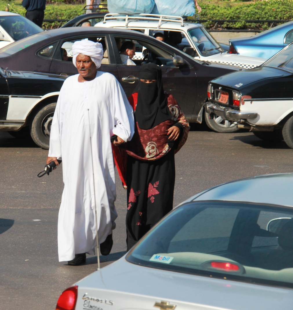 A man and his wife taking a stroll on a street in Cairo