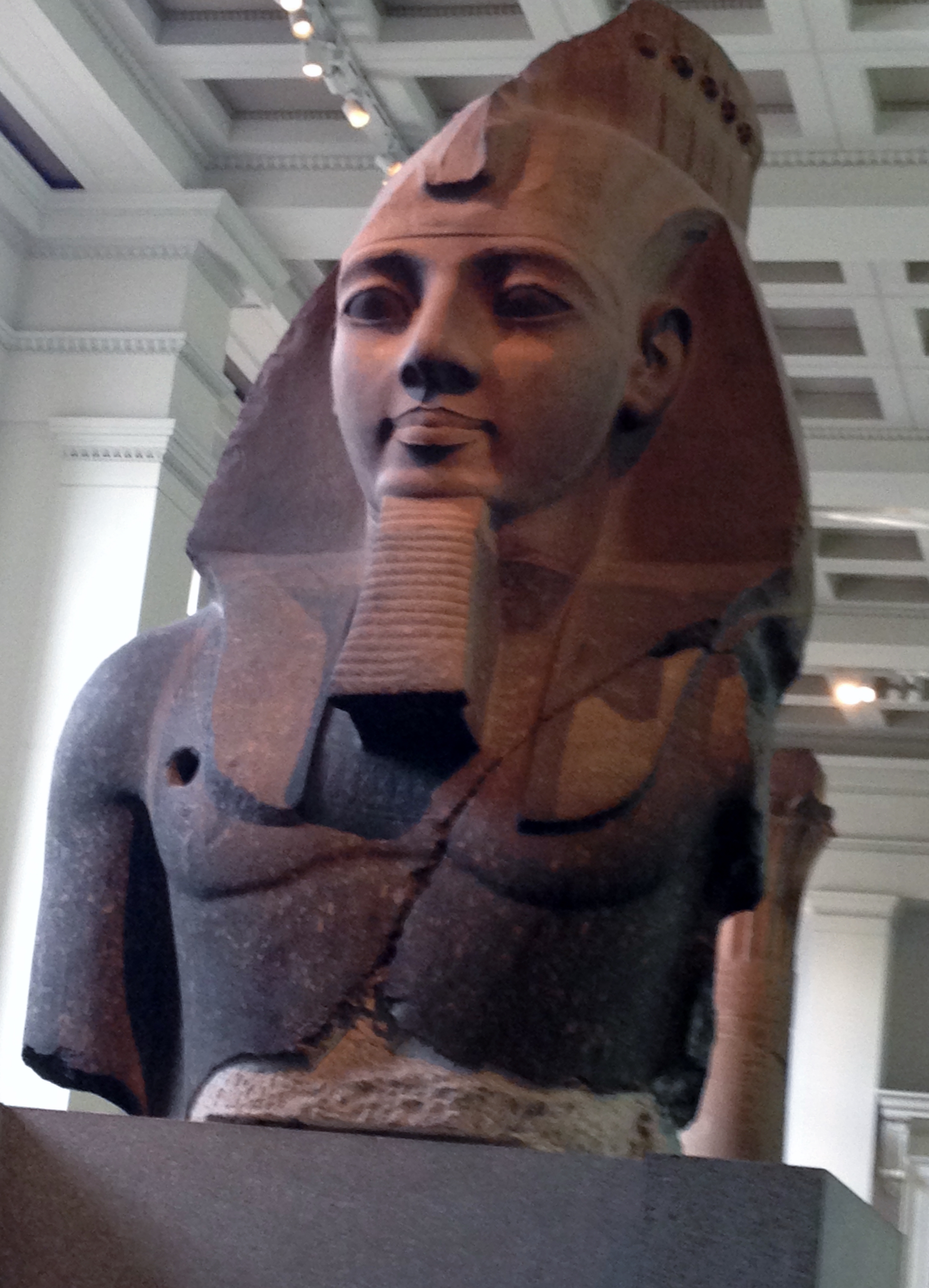 WHILE WALKING INTO THE EGYPTIAN WING IN THE BRITISH MUSEUM, MY ATTENTION WAS CAUGHT BY THIS BEAUTIFUL, VERY LARGE BUST, WHICH ONCE HAD BEEN PART OF A STATUE. IT STANDS RIGHT IN MIDDLE ON A PEDESTAL AND CAN’T BE OVERLOOKED. NOT JUST BECAUSE OF IT SIZE, BUT BECAUSE OF ITS WARM, SMILING FEATURES – AND YES IT IS RAMESSES II.