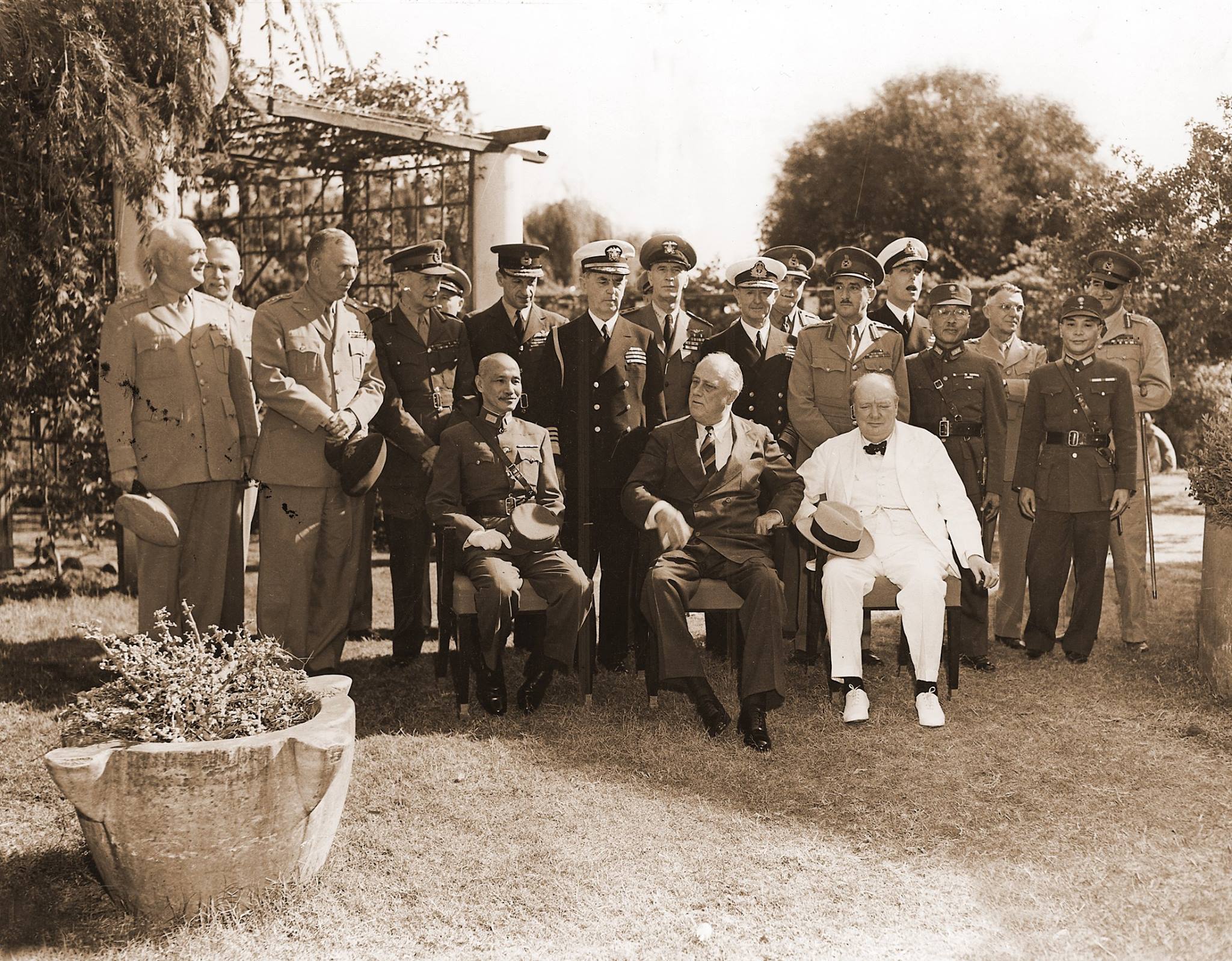 In November of 1943 Winston Churchill, Franklin D. Roosevelt, and Chiang Kai-Shek met for the Cairo Conference, outlining the Allied position against Japan during World War II.