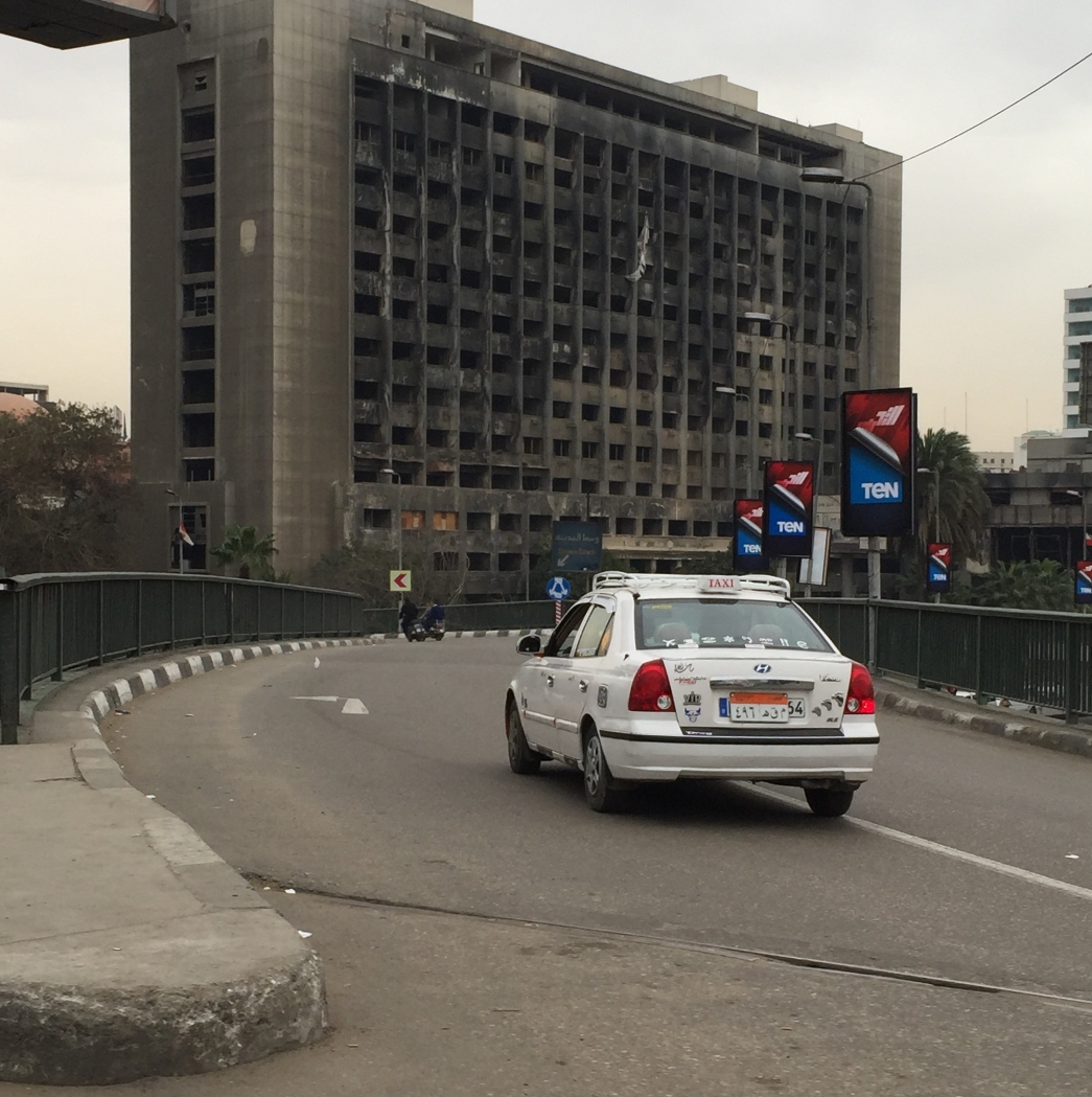 At the time of Egypt’s revolution on the 25th of January 2011 President Hosni Mubarak’s Political Headquarters were torched, leaving to this day an empty, black ghost-like structure.