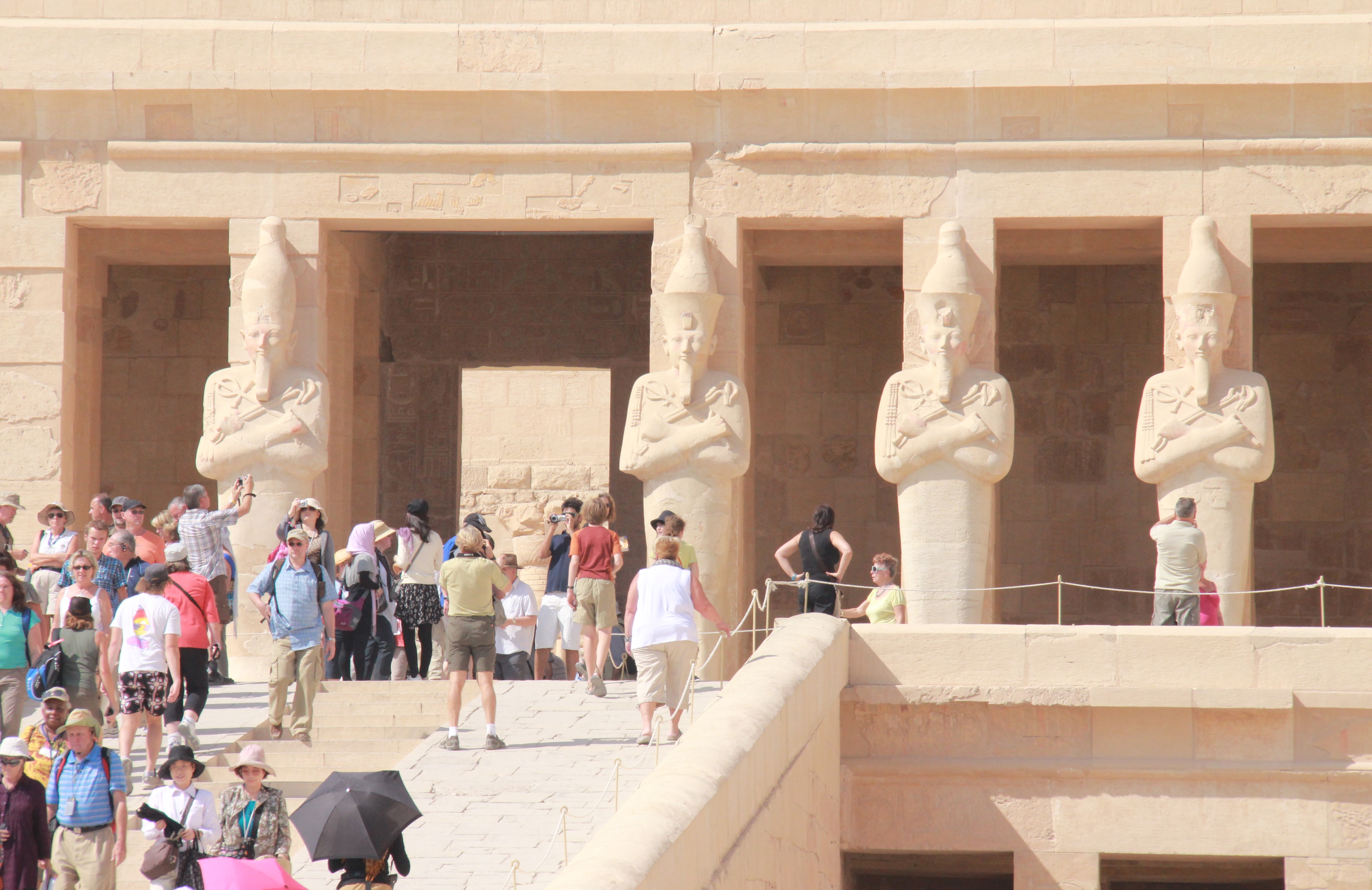 On several of my visits I have been one of the swarms of tourists, but even then it never failed to give me a WOW moment. But on my last visit I learned what WOW really means – it is seeing Queen Hatshepsut’s Temple without, except for the guards,  another human being.
