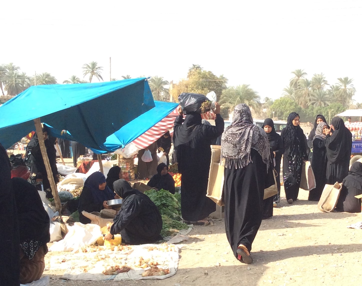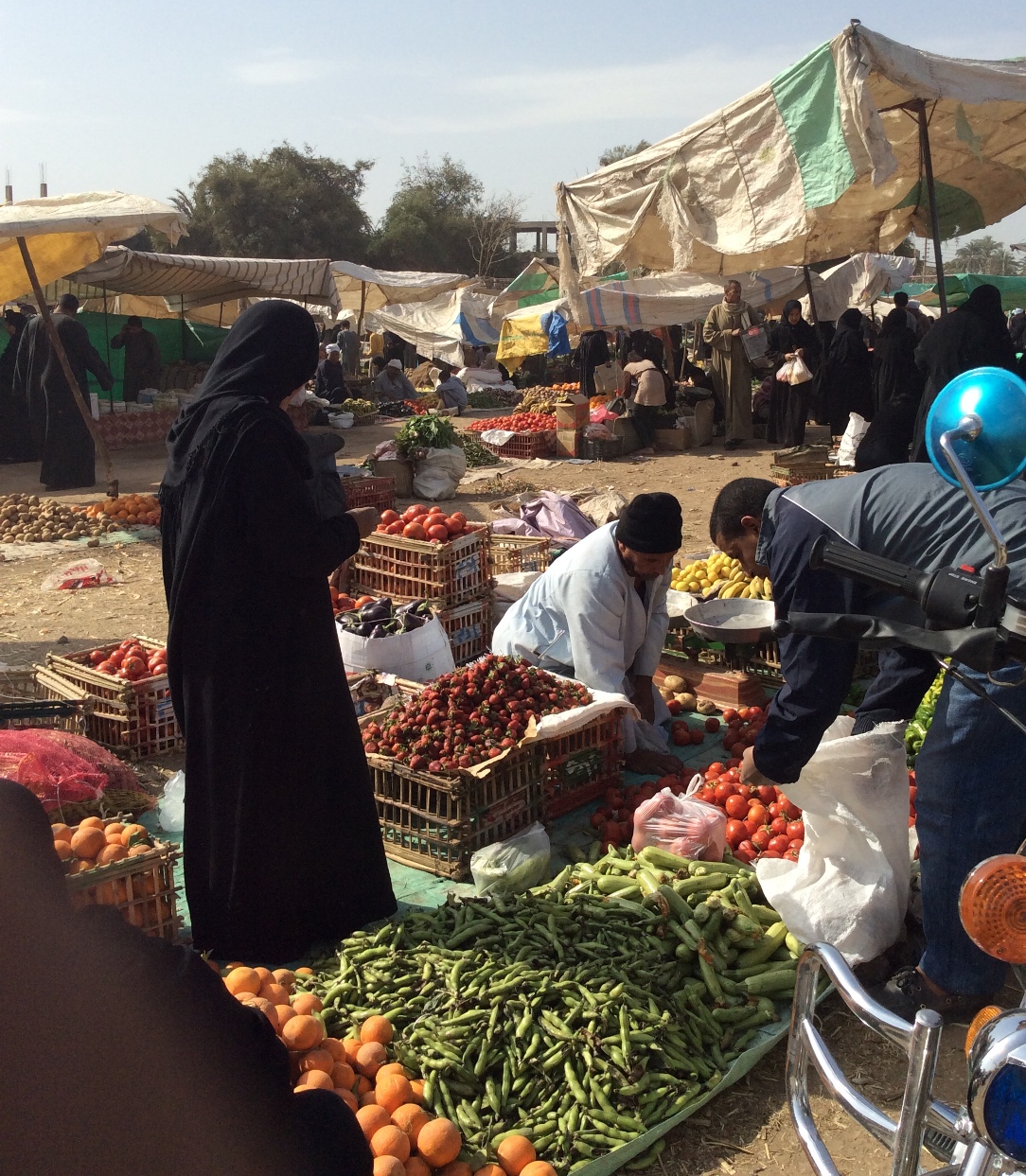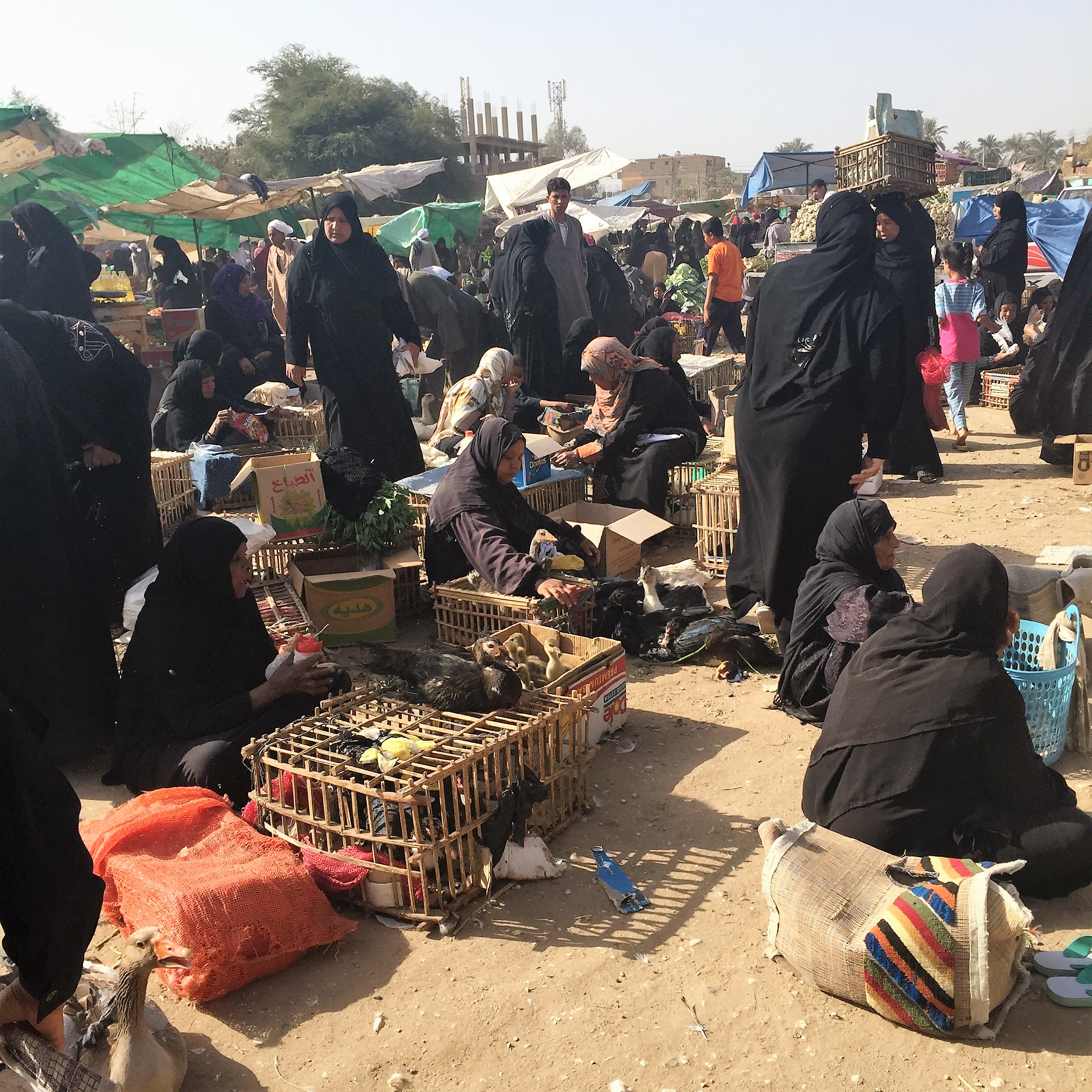 Twice a week, Tuesdays and Saturdays it’s market day in this country village on the West Bank near Luxor. If you buy fruit, vegetables, a live duck or a live chicken it is all organic.