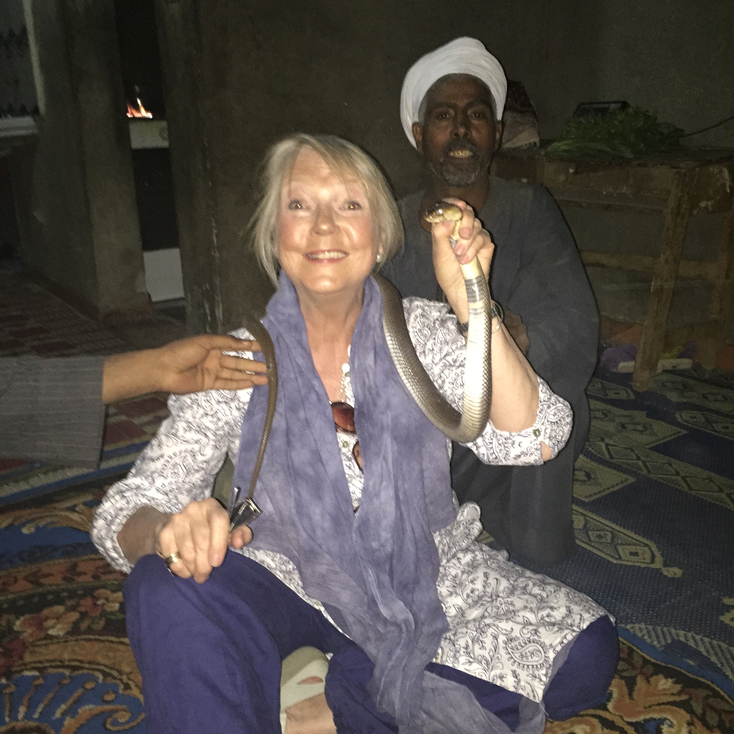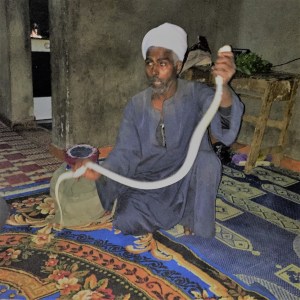 It was a hot afternoon in Luxor and we had just finished lunch. Our driver Ahmed came to pick us up, but we did not have a real destination for the rest of the afternoon. Suddenly Liz got an idea. She asked Ahmed if he knew a snake charmer. He looked puzzled, but Liz went on,